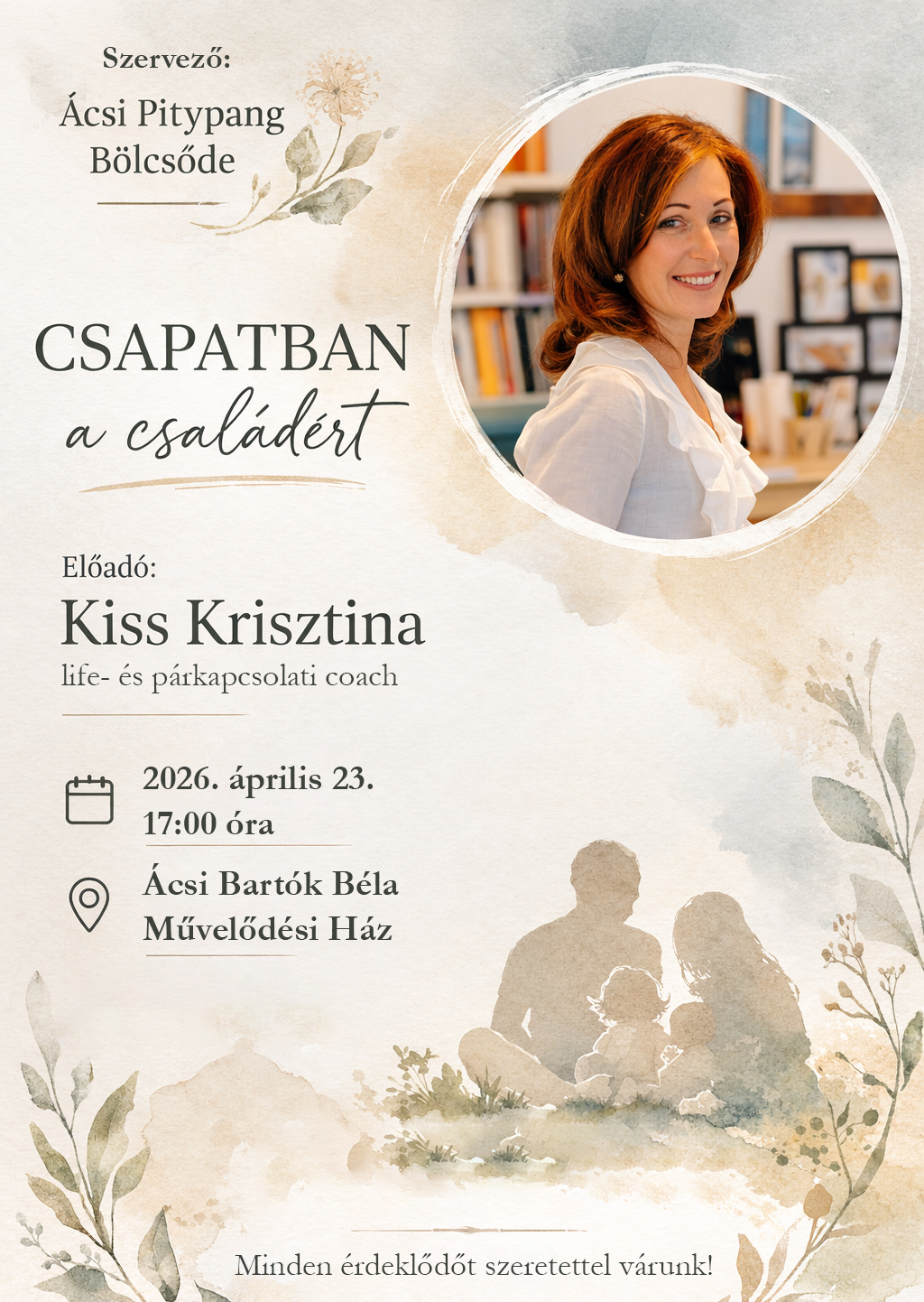 1, Csapatban a családért - Kiss Krisztina (előadás) - 04.23. (csütörtök) - 17:00