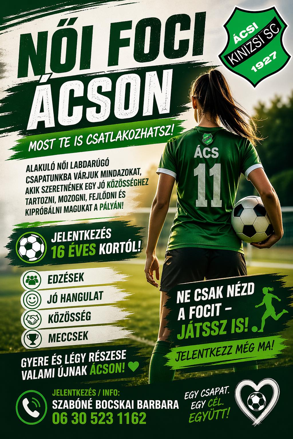Alakuló női labdarúgó csapatba várják mindazokat, akik szeretnének egy jó közösséghez tartozni, mozogni, fejlődni és kipróbálni magukat a pályán!