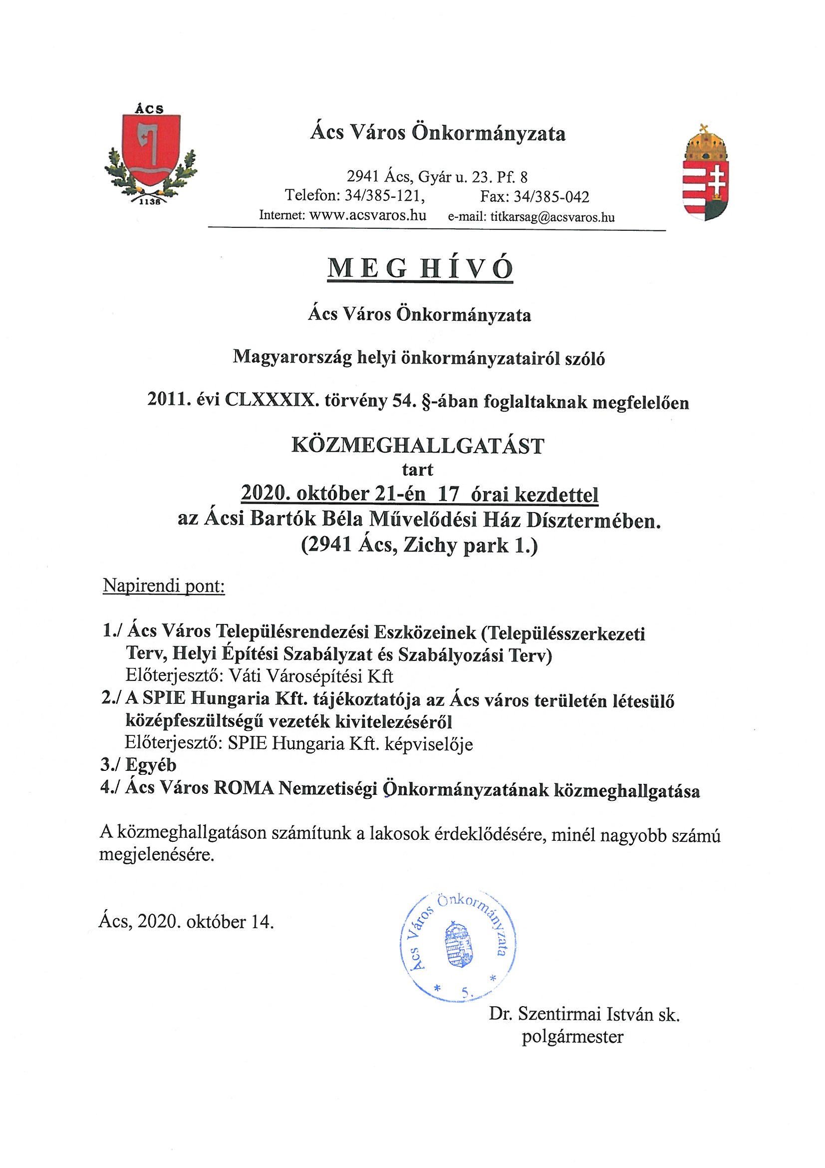 Ács Város Önkormányzata ismét megnyitja a pályázati lehetőséget az EFOP-1.2.11-16-2017-00020 „Ácsra vágyÁcs” pályázat keretében lakhatás biztosítására A pályázat benyújtási határideje: 2020. november 16. A pályázati felhívás és a pályázati adatlap letölthető itt: |