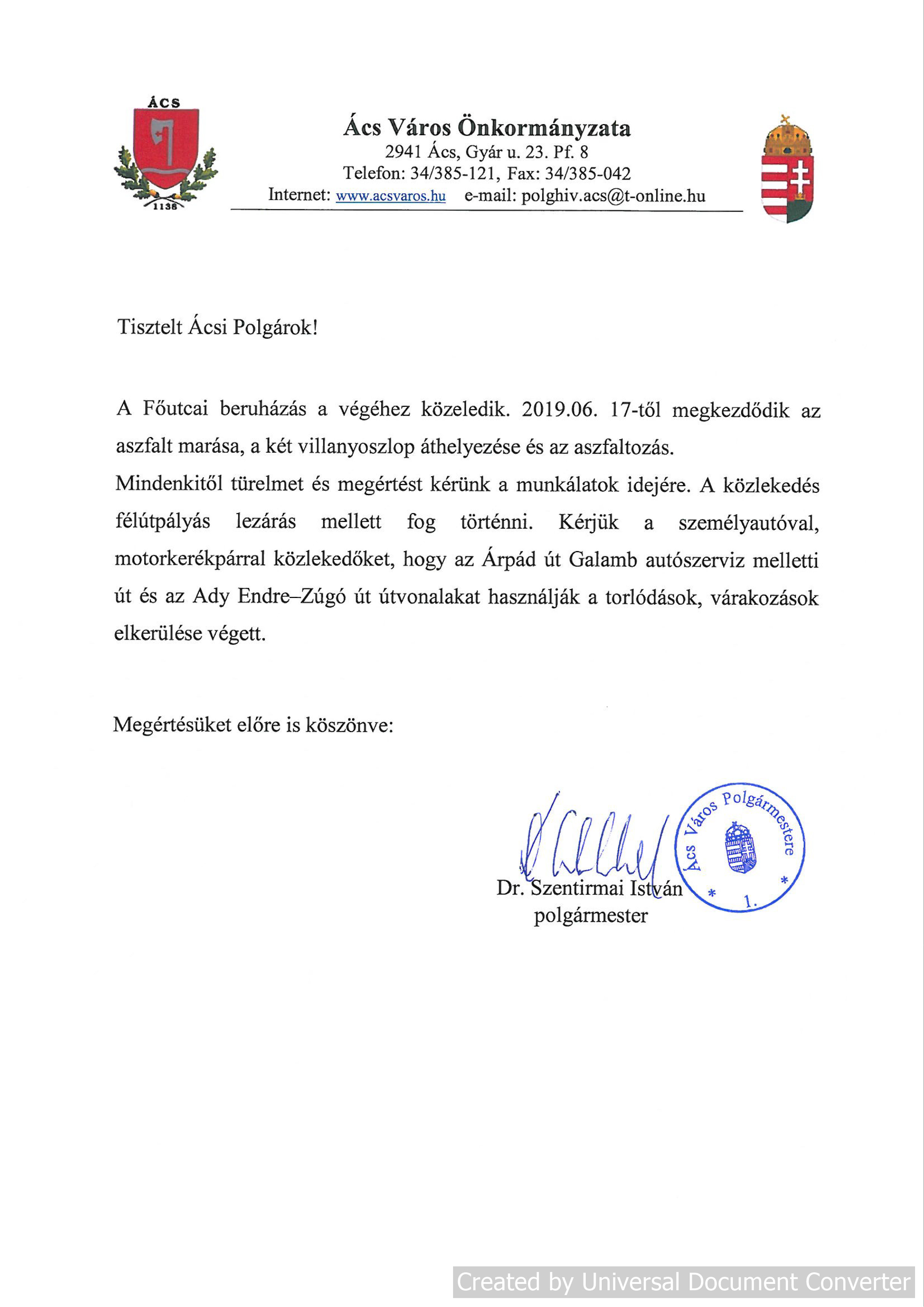 Tájékoztató a Fő utcai beruházásról